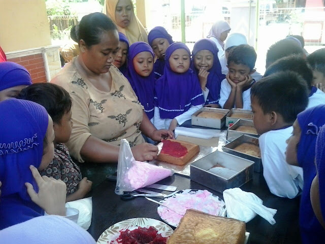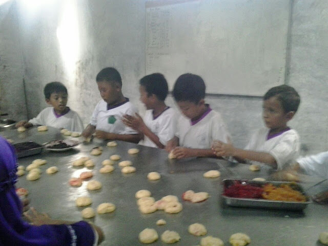 Lihatlah bagaimana siswa siswi sangat antusias untuk melihat bagaimana proses pembuatan roti tersebut.