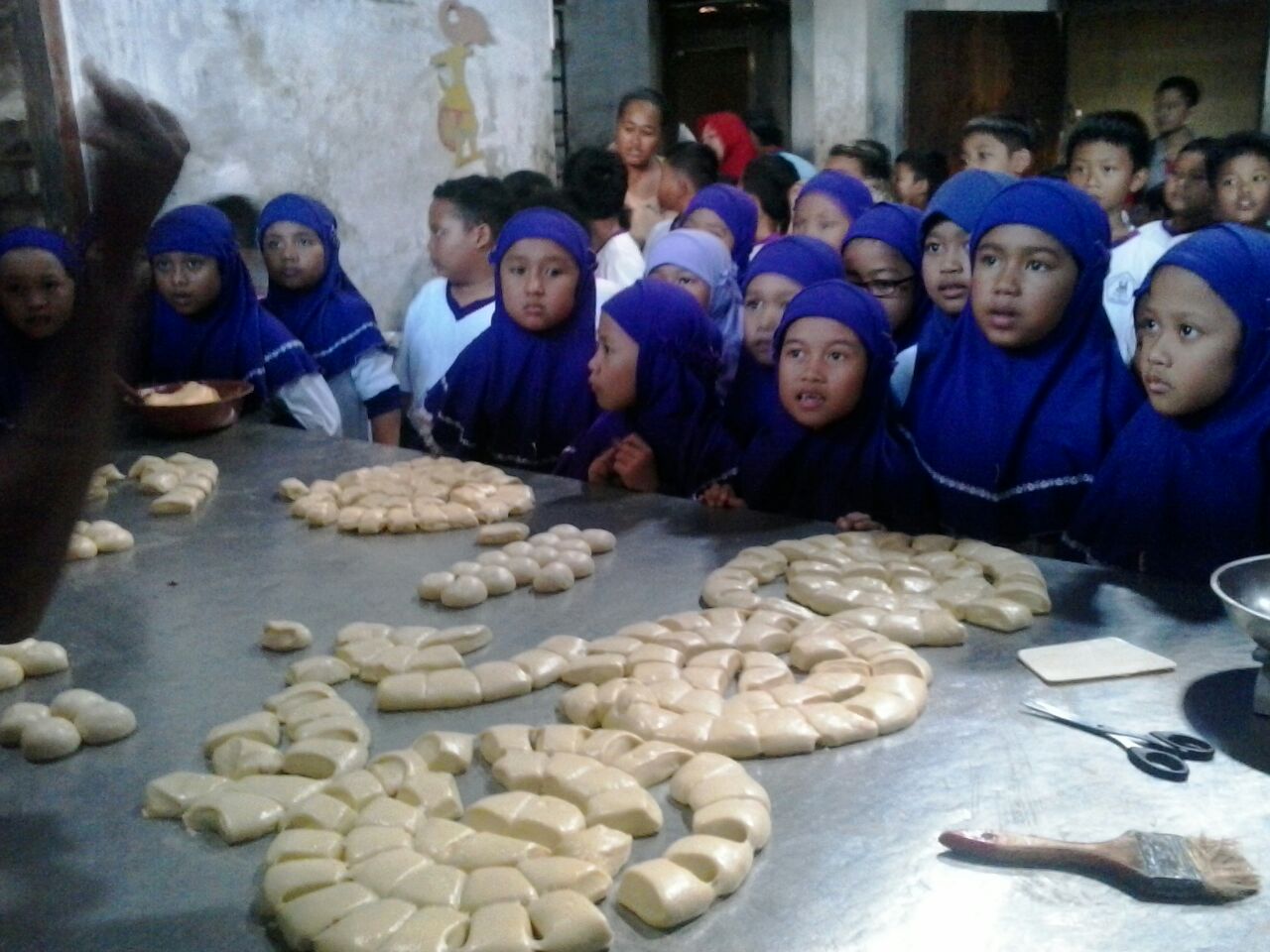 Wajah wajah penasaran terlihat dari siswa siswi kelas III SD IT Amal Insani Jepara. Hari Kamis, tanggal 6 Oktober kemarin mereka melakukan kunjungan edukasi di Centra Pembuatan Roti di Desa Bugo Welahan Jepara. Meraka ingin mengetahui bagaimana proses pembuatan Roti di desa tersebut. Antusiasme dan rasa ingin tahu yang tinggi pada siswa siswi menambah semangat para karyawan disana untuk mengajarkan bagaimana proses pembuatan roti tersebut.